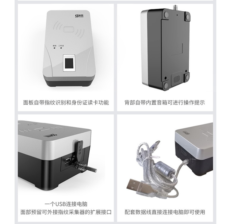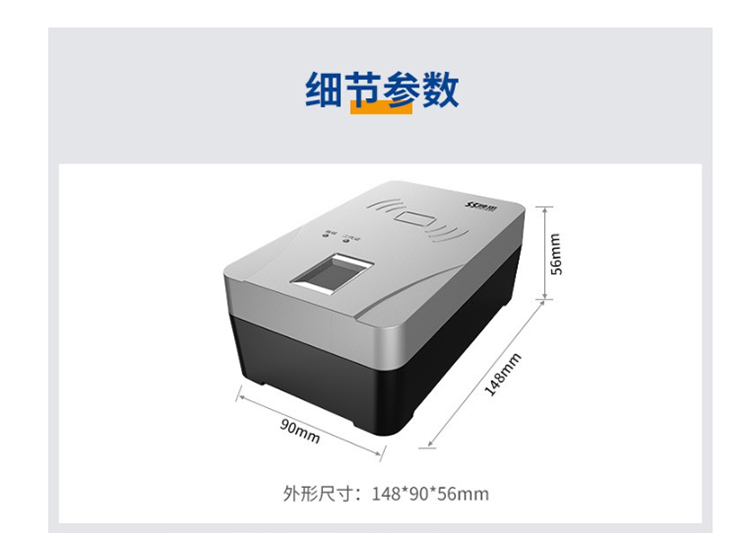 神思SS628(100M)身份證閱讀器是神思一款具有指紋比對功能的身份證讀卡器,做工精細,材料優異,